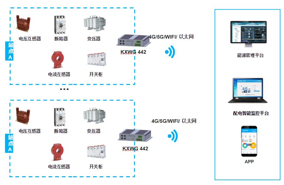 通过科讯的智能网关采集配电站的各类设备(如变压器、开关柜、断路器等)将采集到的配电数据(如电流、电压、温度、湿度等)传输至配电站智能监控平台。平台实时监测设备状态,当出现异常或故障时及时发出预警,并提供故障诊断和处理指导。同时具备电能质量监测功能,支持远程运维操作和负荷优化管理。